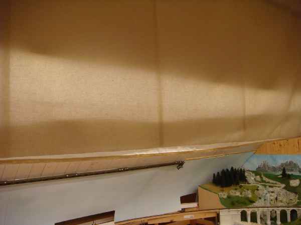l'installation d'un nouvel éclairage de la pièce du réseau, j'ai constaté que les rideaux cachant les rubans de leds n'étaient pas assez opaques. Le rôle de ces rideaux est d'empêcher les divers éclairages d'être vus directement, afin de ne pas éblouir ou perturber le regard. Depuis la mise en place des rubans à leds blanches puissantes, les rideaux sont vraiment trop légers. Sans chercher à atteindre l'opacité complète, il était nécessaire de filtrer davantage. Je présente ici la solution