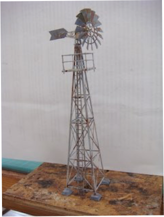 Sur le module de paysage en cours de réalisation, figure une ferme que je souhaitais équiper d’une éolienne de puisage de l’eau. Afin de gagner un peu de temps dans la construction j’ai mis de côté l’idée d’une réalisation intégrale et je me suis tourné vers le kit SMD en laiton photo découpé que je trouve réaliste et très fin. Dans le même temps je réfléchissais également à mettre du mouvement chaque fois que cela est possible sur des éléments du décor, aussi l’idée de rendre l’éolienne fonctionnelle m’est venue à l’esprit. Par fonctionnelle j’entends qu’elle va tourner mais elle ne va pas pomper d’eau ! Le modèle SMD, entièrement en laiton et dont la turbine est déjà libre de tourner, se prête plutôt bien à cette motorisation.