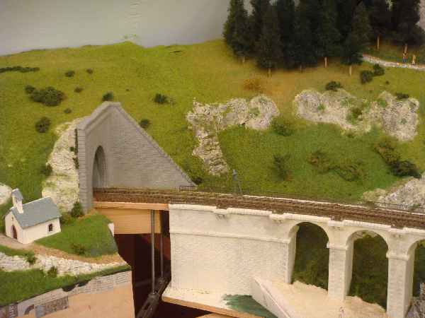 Ce réseau commencé en 2009 occupe une pièce de 6 m sur 6 m environ. Depuis cette date il a bien progressé. Actuellement les trains circulent sur les voies principales et environ 2/3 du décor est réalisé.