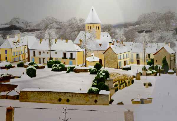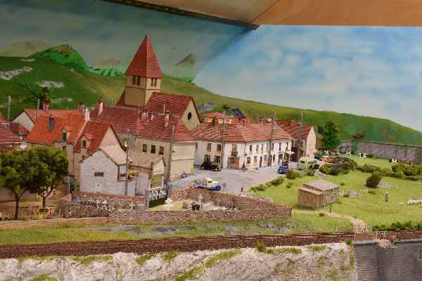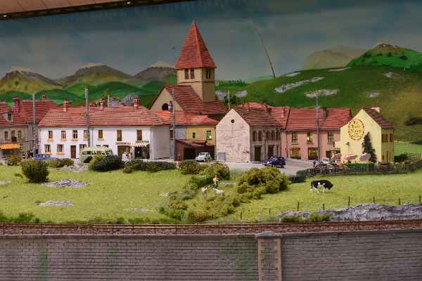 Photo prise sur le réseau de Philippe à peu près du même point de vue que la photo suivante. Soixante ans environ les séparent, mais la maquette de Philippe représente le village sensiblement dans les mêmes années 60, pas à la même saison !