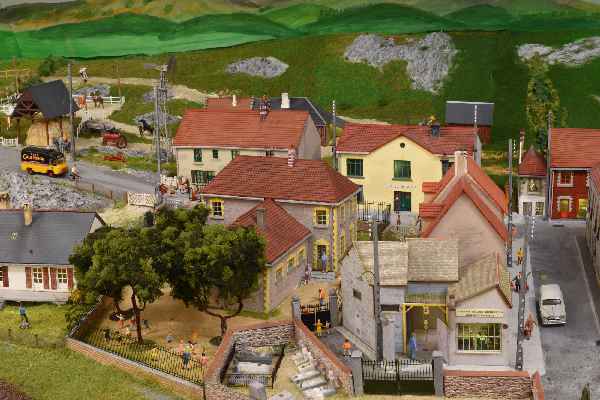 On voit en comparant les deux photos suivantes quelques changements dans les maisons du village. Le réseau de Philippe se situe début 1960 et il a réalisé son décor à partir de vues et de veilles cartes postales que je lui ai données (2). À partir aussi de ses propres photos de vacances. Dans l'ensemble le village n'a guère changé. Lorsque je suis sur les hauteurs, j'ai le sentiment d'admirer le réseau minature de Philippe !